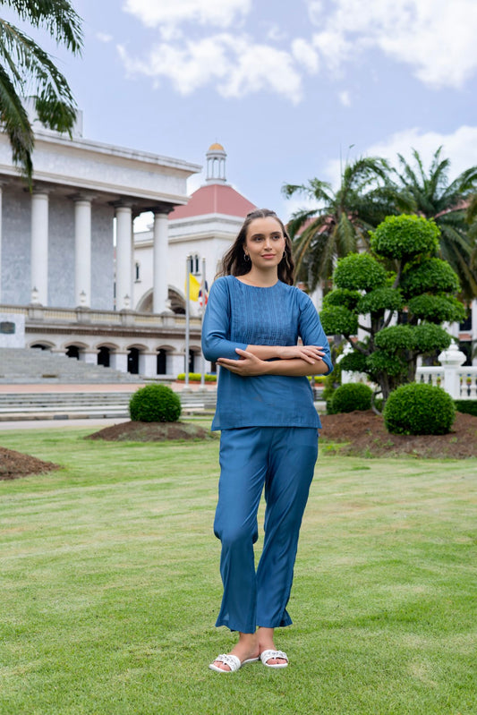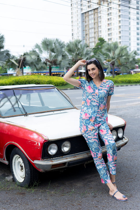 Viscose Blend All Over Print Storm Blue Co-Ord Set