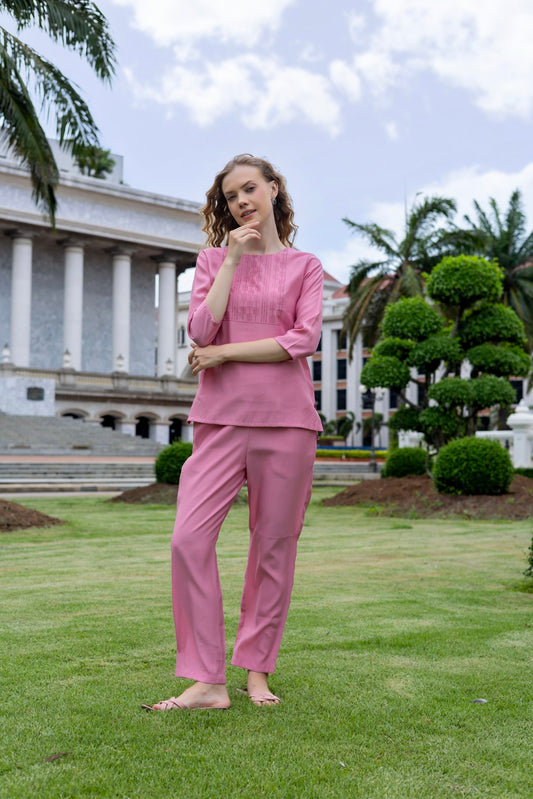 Liva Viscose Fuchsia Embroidery Co-Ord Set