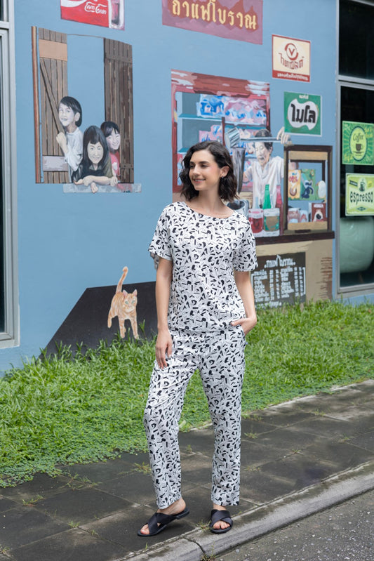 Poly Muslin All Over Print Light Grey Co-Ord Set