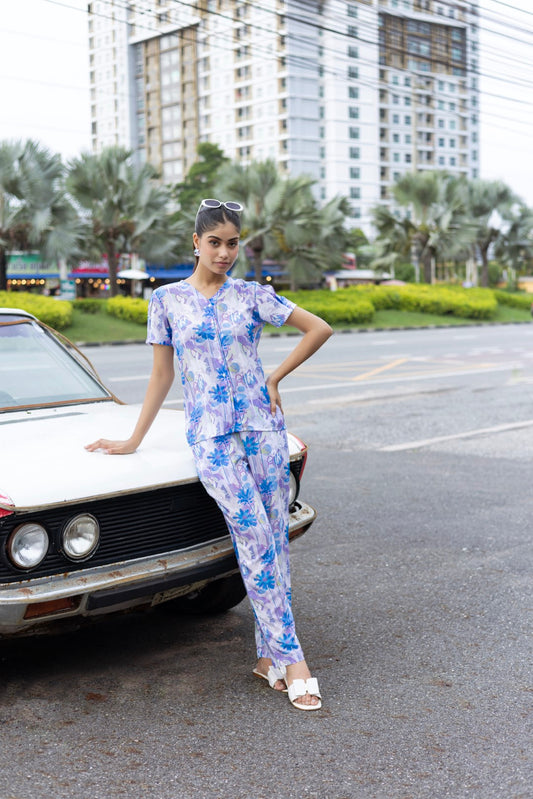 Rayon All Over Print Dark Lavender Lumiere Luxe-Premium Co-Ord Set