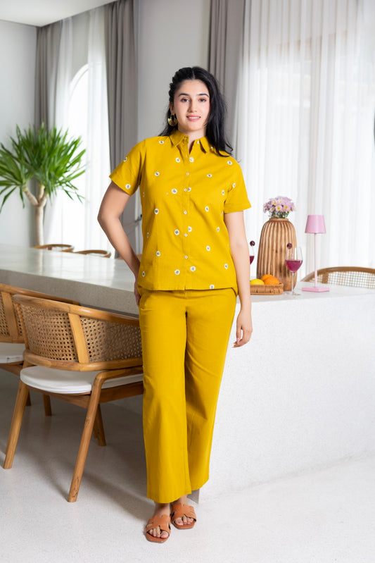 Cotton Chest Print Mustard Co-Ord Set