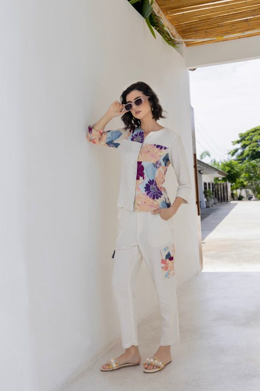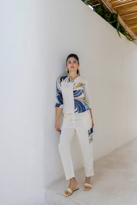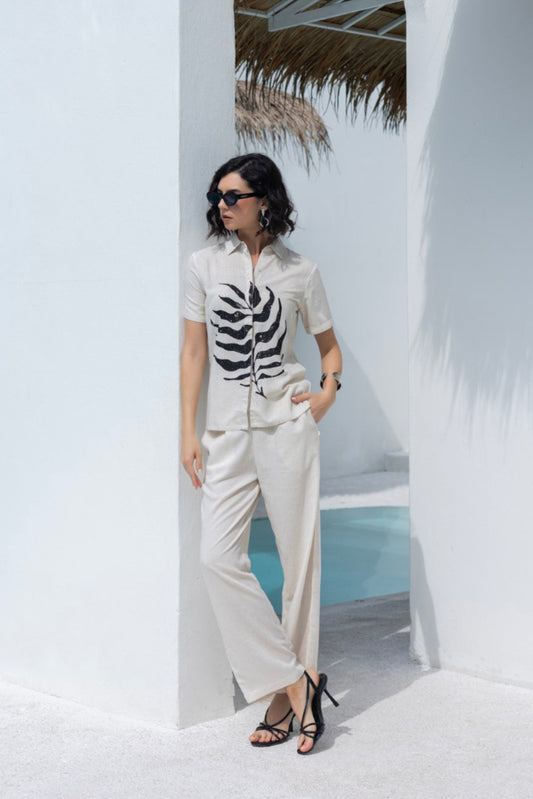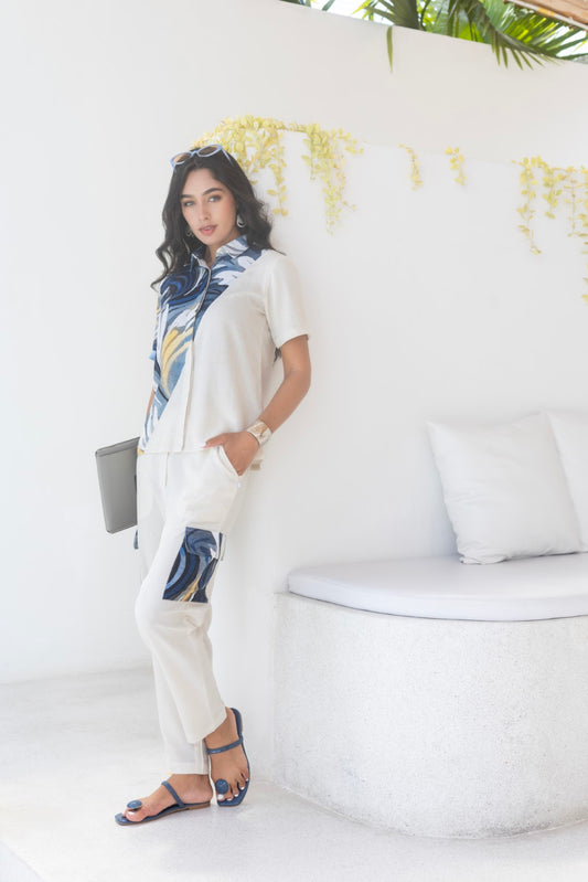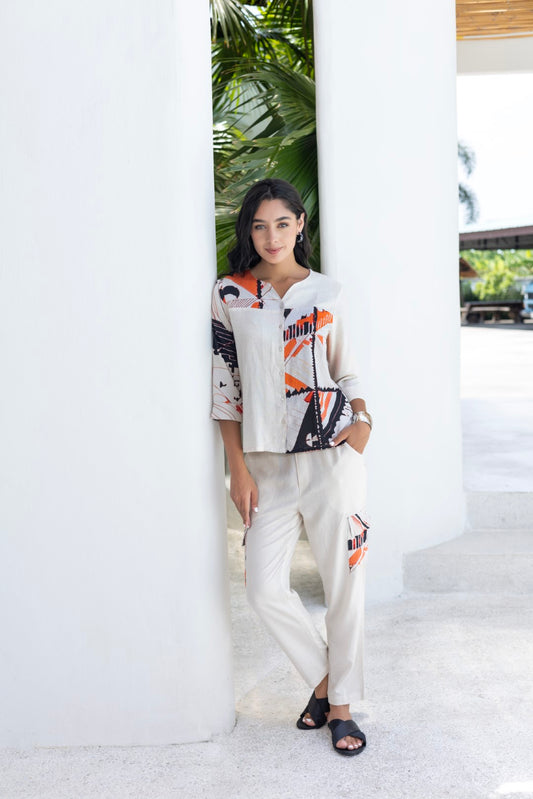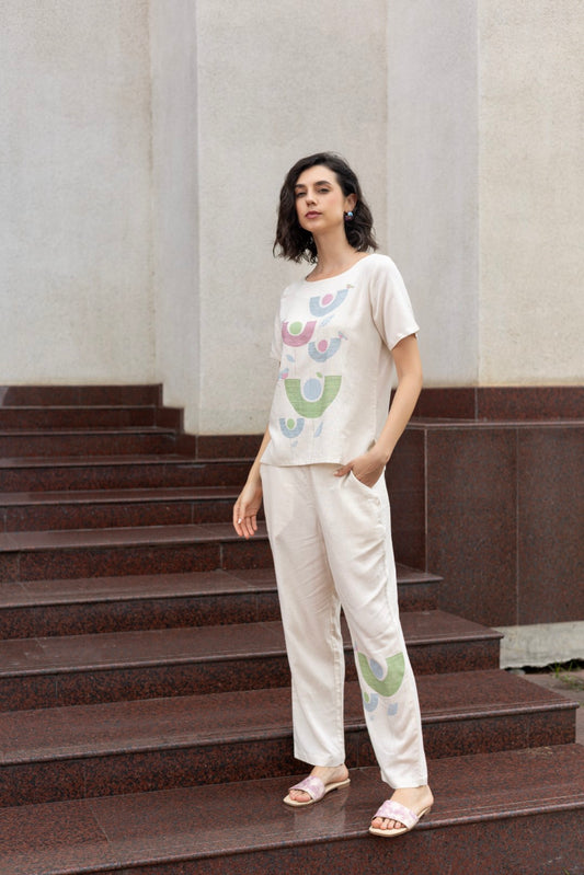 Rayon Chest Print Natural Lumiere Luxe-Premium Co-Ord Set