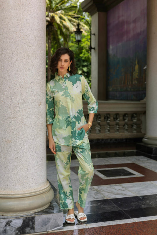 Cotton All Over Print Pista Green Lumiere Luxe-Premium Co-Ord Set