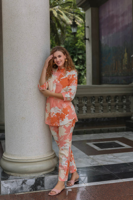 Rayon All Over Print Orange Lumiere Luxe-Premium Co-Ord Set