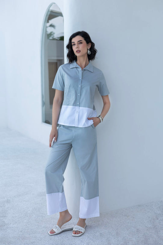 Poplin Embroidered Grey Lumiere Luxe-Premium Co-Ord Set