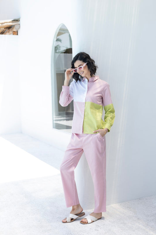 Cotton Solid Pink Lumiere Luxe-Premium Co-Ord Set